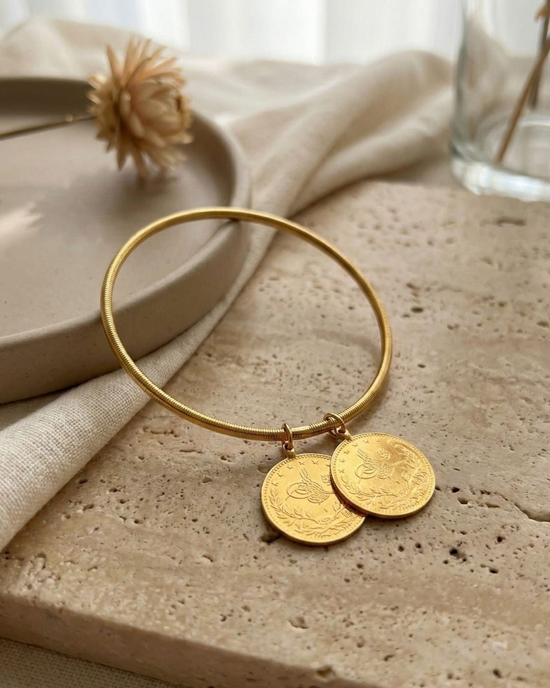 - Ajda Armreifen mit 2 Resat kleine Münze