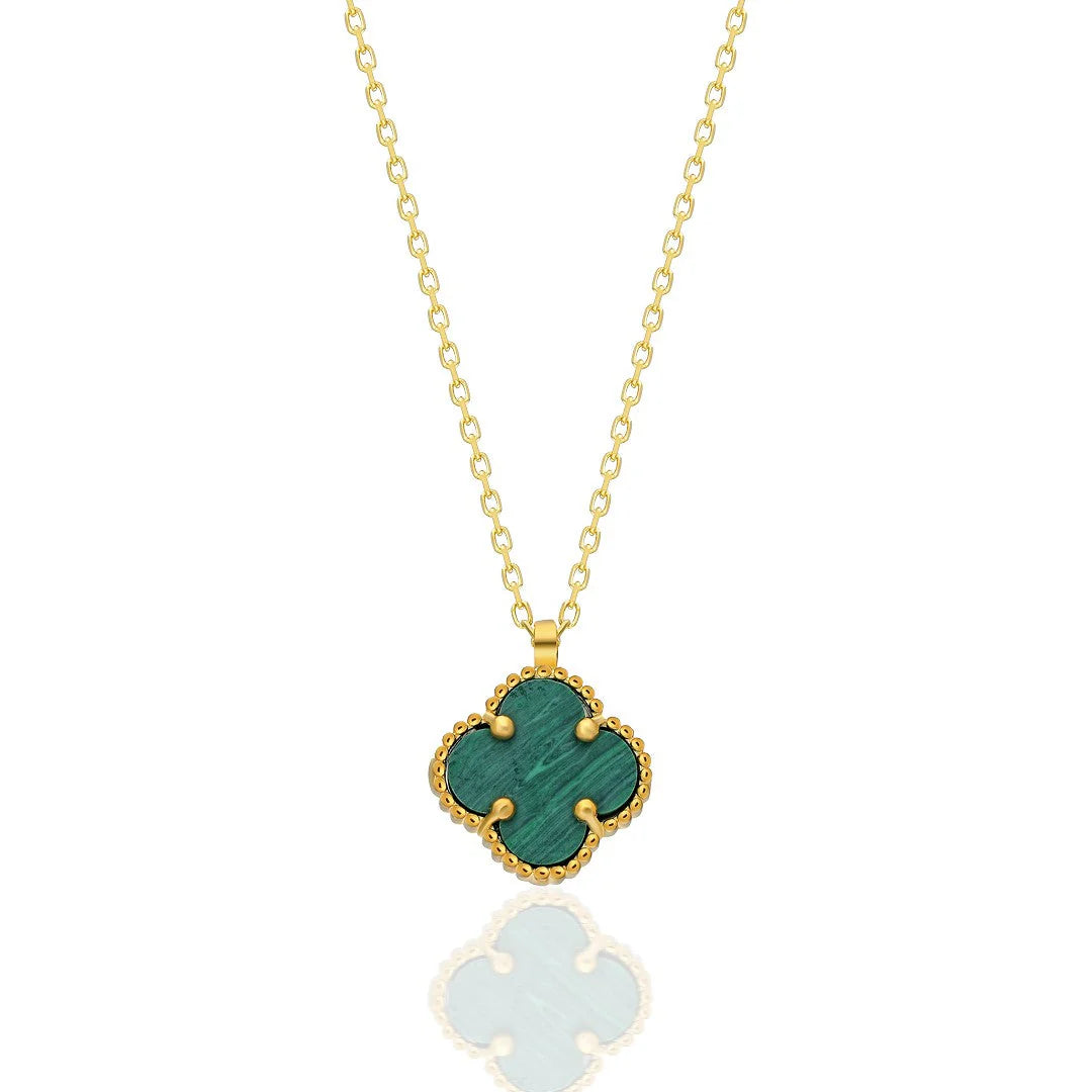Grünstein Kleeblatt Halskette / 925 SILBER