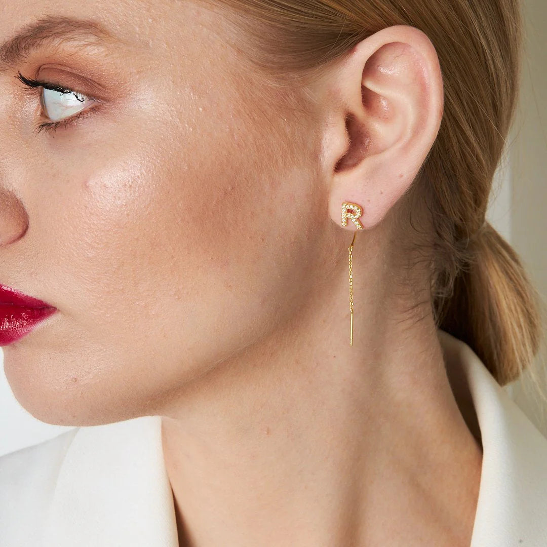 Steine mit Buchstaben-Kettenohrringe / 925 SILBER