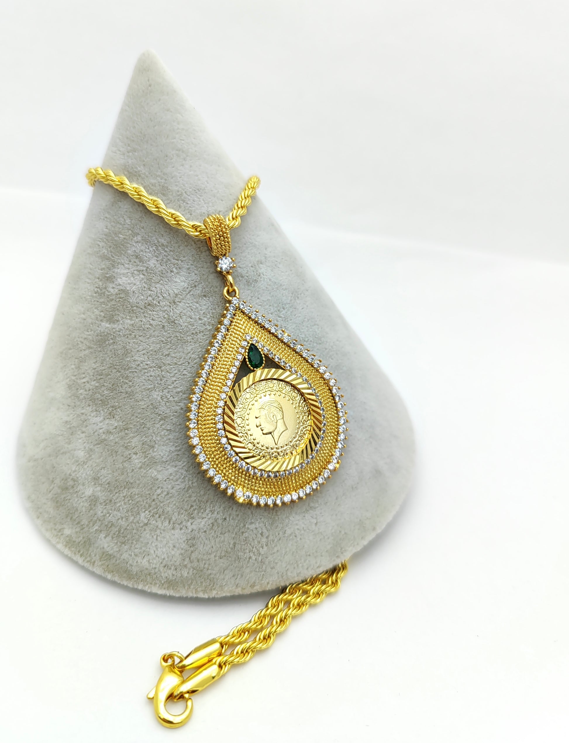 Tropfen mit Ceyrek Halskette 22k Vergoldet