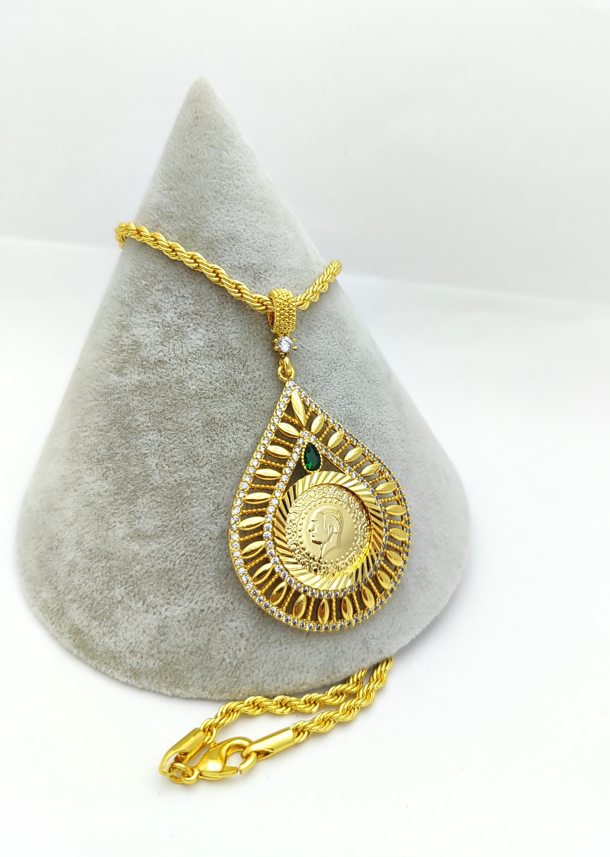 Erhalten Sie mit unserer Tropfen Halskette einen Hauch von Eleganz. Die tropfenförmige Ceyrek Halskette besteht aus 22k vergoldetem Material und verleiht Ihnen einen luxuriösen Look. Perfekt für jeden besonderen Anlass oder um Ihrem Outfit den letzten Schliff zu verleihen.