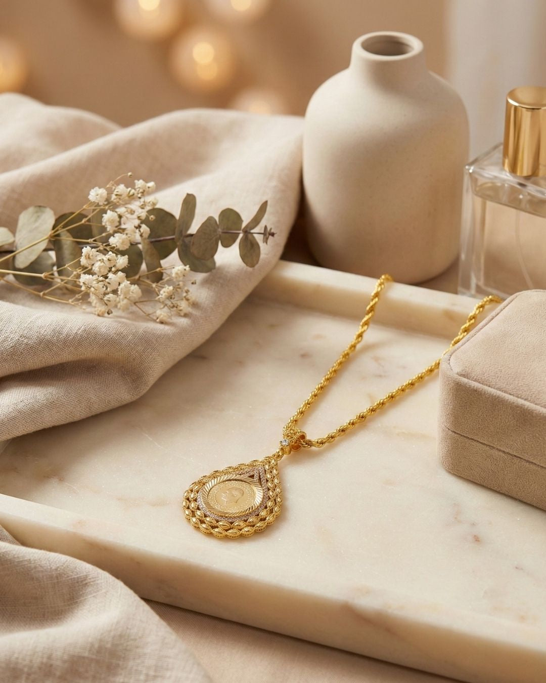 Tropfen mit Ceyrek Halskette 22k Vergoldet